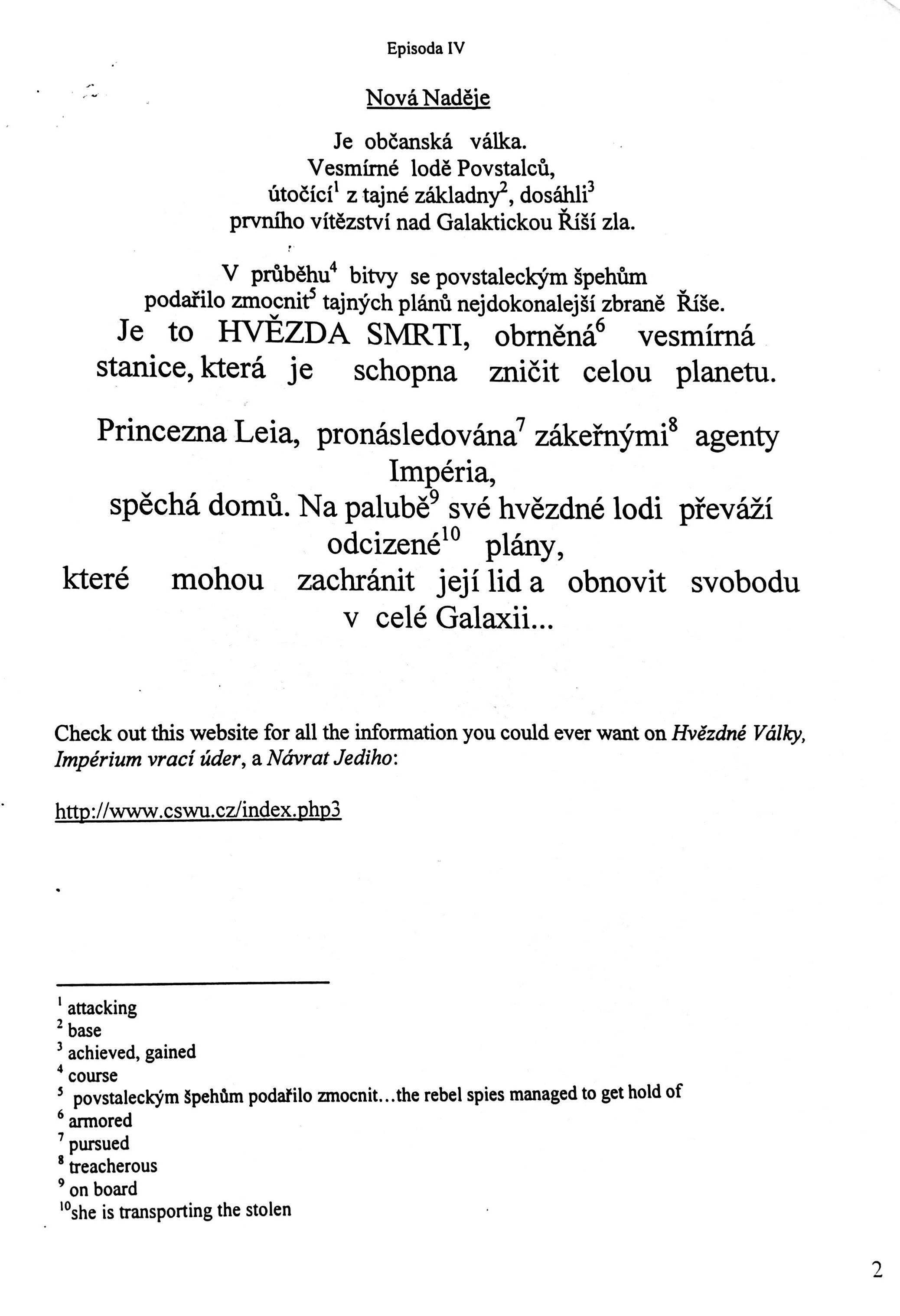 I created materials from Star Wars (Hvězdné Války) to teach intermediate / advanced Czech (at UNC Chapel Hill). Not to worry: we used plenty of ‘native’ Czech materials as well. But my students (and I) were of a generation that grew up with the original trilogy- and it’s fascinating to see how Czechs ‘localized’ that for their own consumption. I had bought copies of the original trilogy dubbed into Czech on one of my trips to Prague- and then I used Czech online resources to generate training materials. Message me if you’d like to know more!