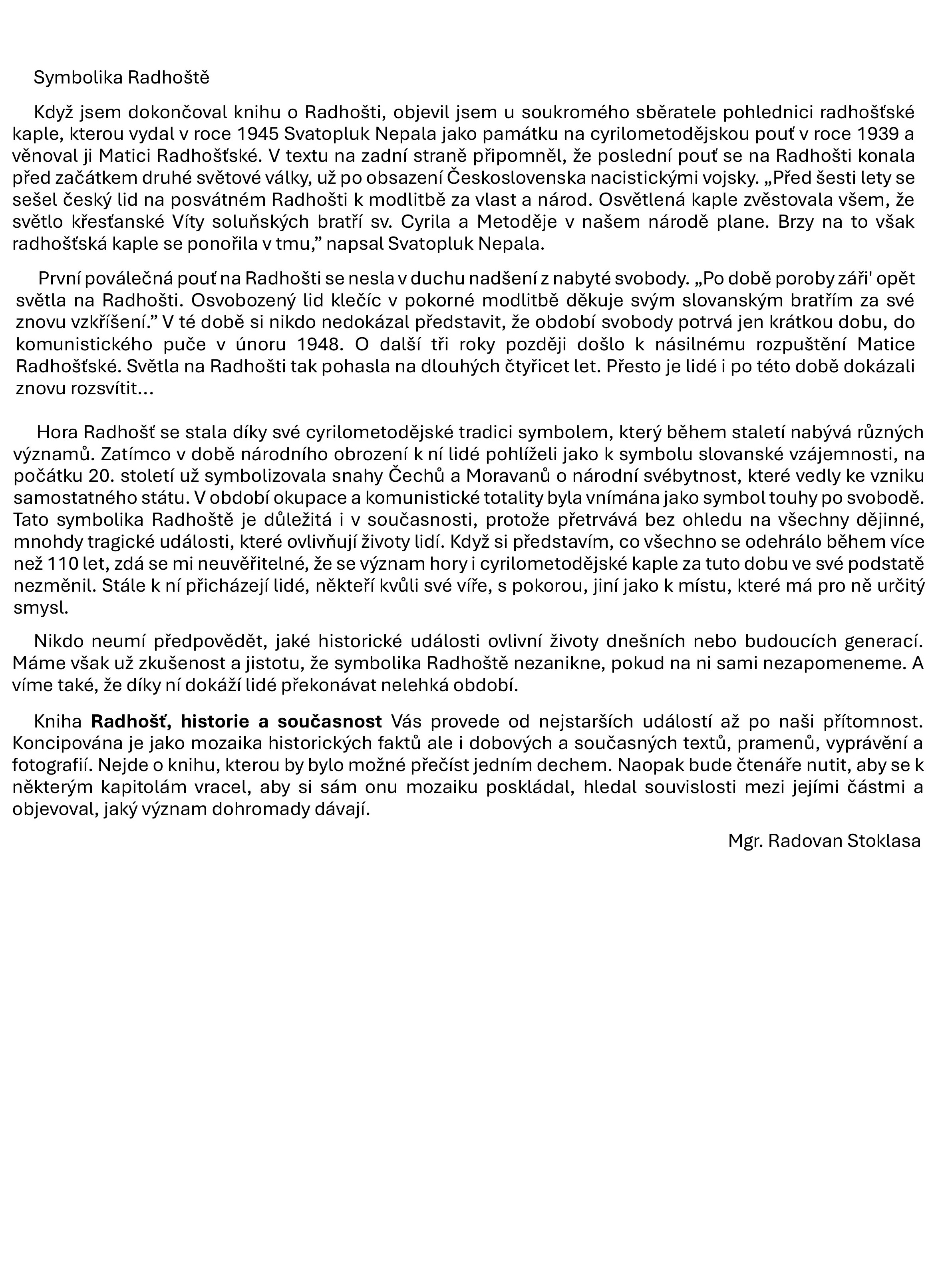 | Cultural History Translation (Czech → English) | Introduction to Radhošť: historie a současnost (Czech → English). Posted with kind permission of the author Mgr. Radovan Stoklasa. [Purchase the book] | Czech Original English Translation |